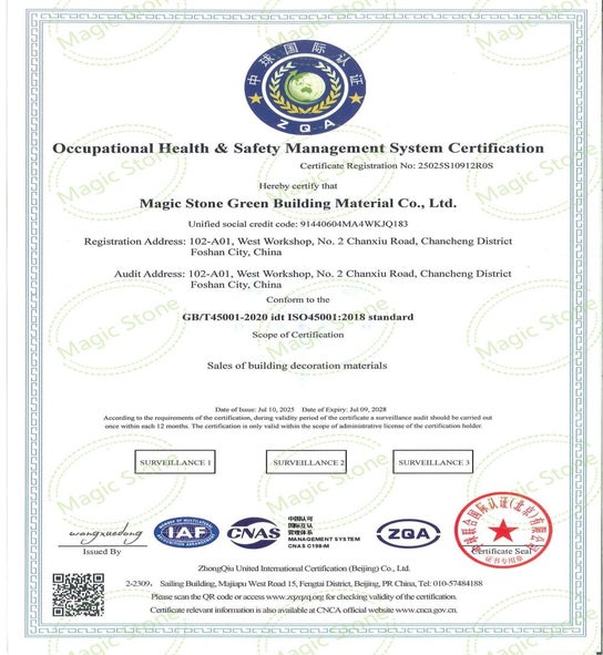 These certifications substantiate our dedication to delivering fire-safe, environmentally sustainable, and durable stone panels that align with the expectations of architects, designers, and contractors.